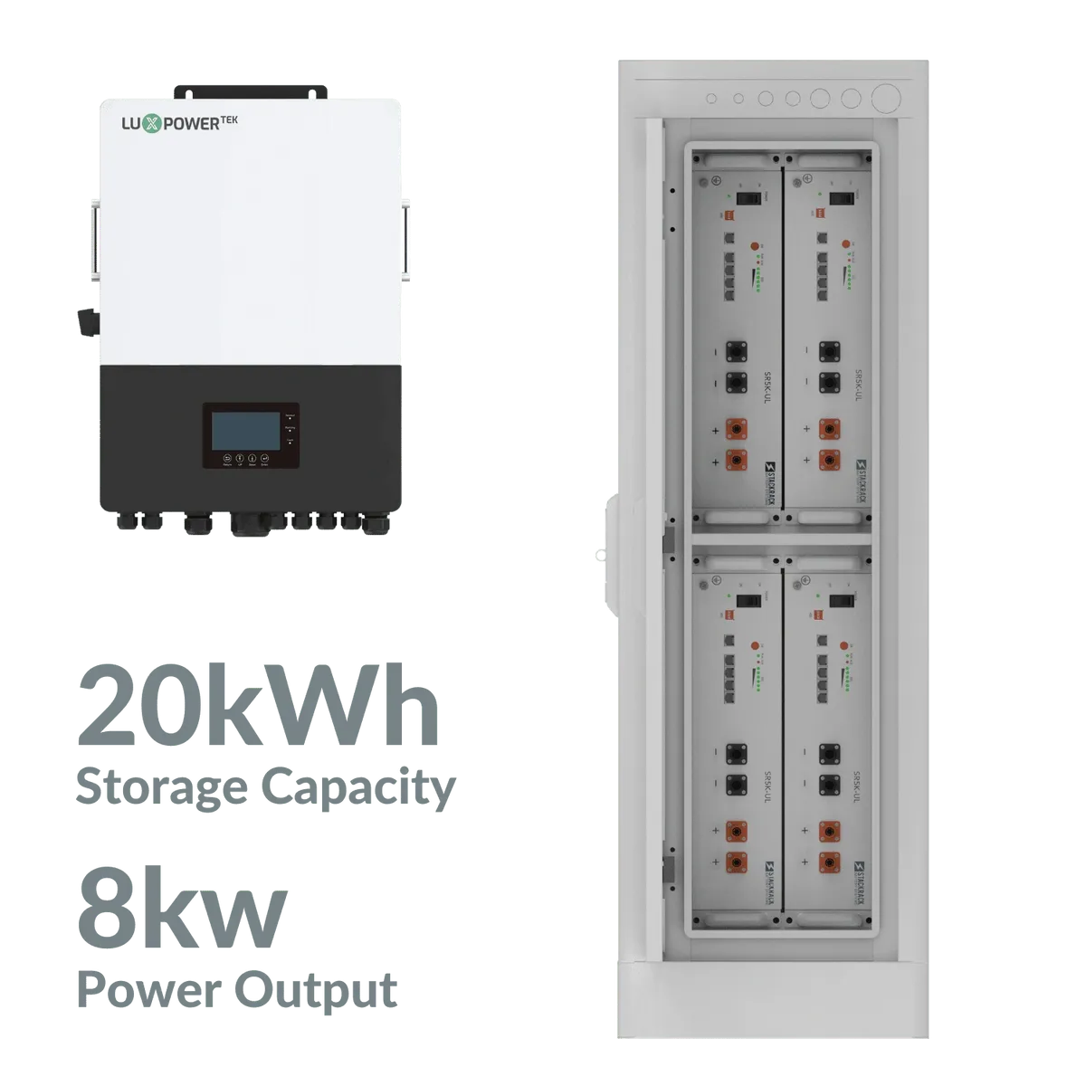 Provide your home or business with 20 kWh of safe and reliable battery storage in a simple to install, outdoor-rated battery cabinet. Ideal for essential load backup and avoiding expensive utility peak times.